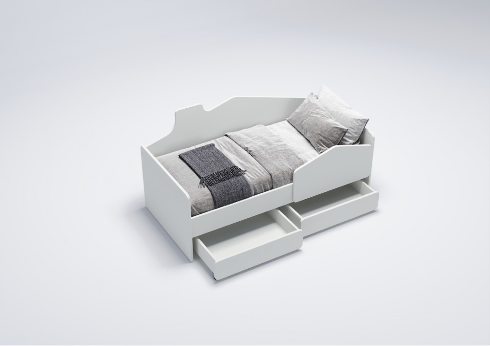 Дополнительное пространство для хранения обеспечивают два выкатных вместительных ящика, оборудованные прямоходными колесами. Эти ящики помогут поддерживать порядок в комнате, а также предоставят возможность хранения игрушек, книг, одежды и других детских принадлежностей.