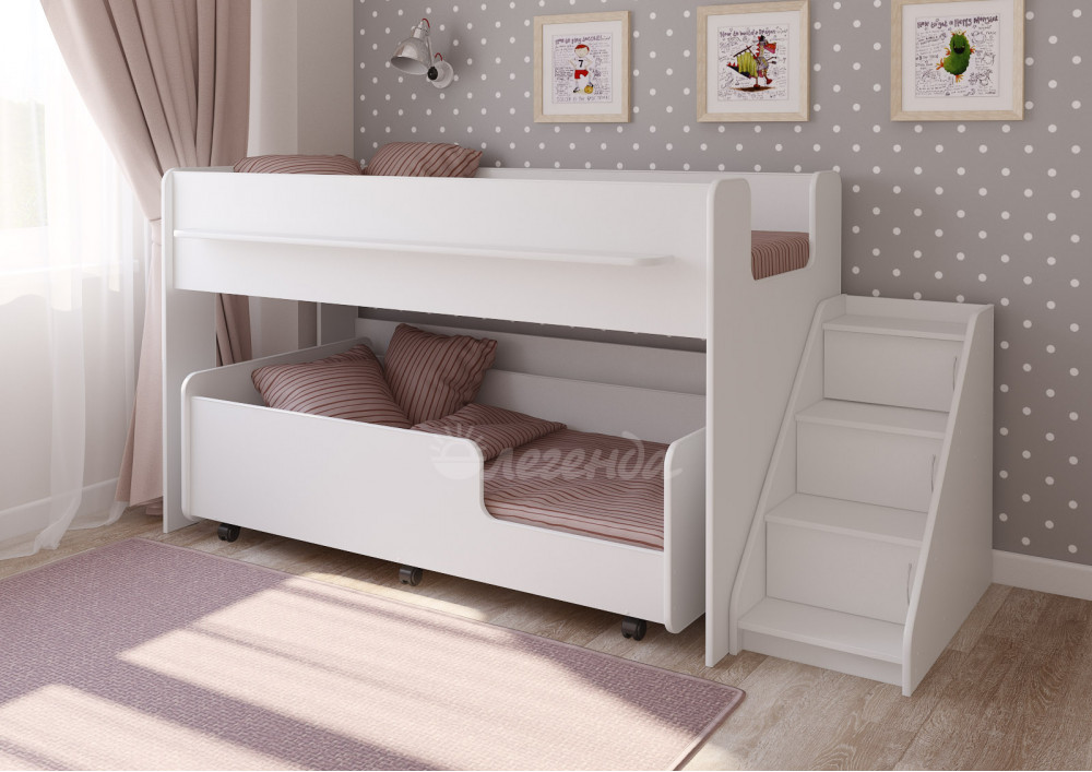 Детская выкатная белая кровать Легенда 23.4 – это удобно и практично.