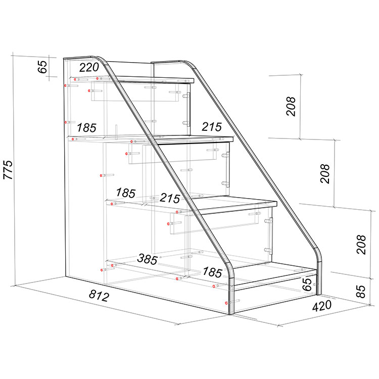 Комплект спроектирован таким образом, что под верхним спальным местом рядом с выкатной кроватью идеально поместится стол Л-02. При необходимости, комплект можно дополнить столом.